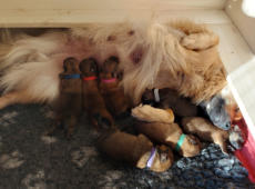 Die Welpen wachsen und gedeihen. Alle trinken fleißig.